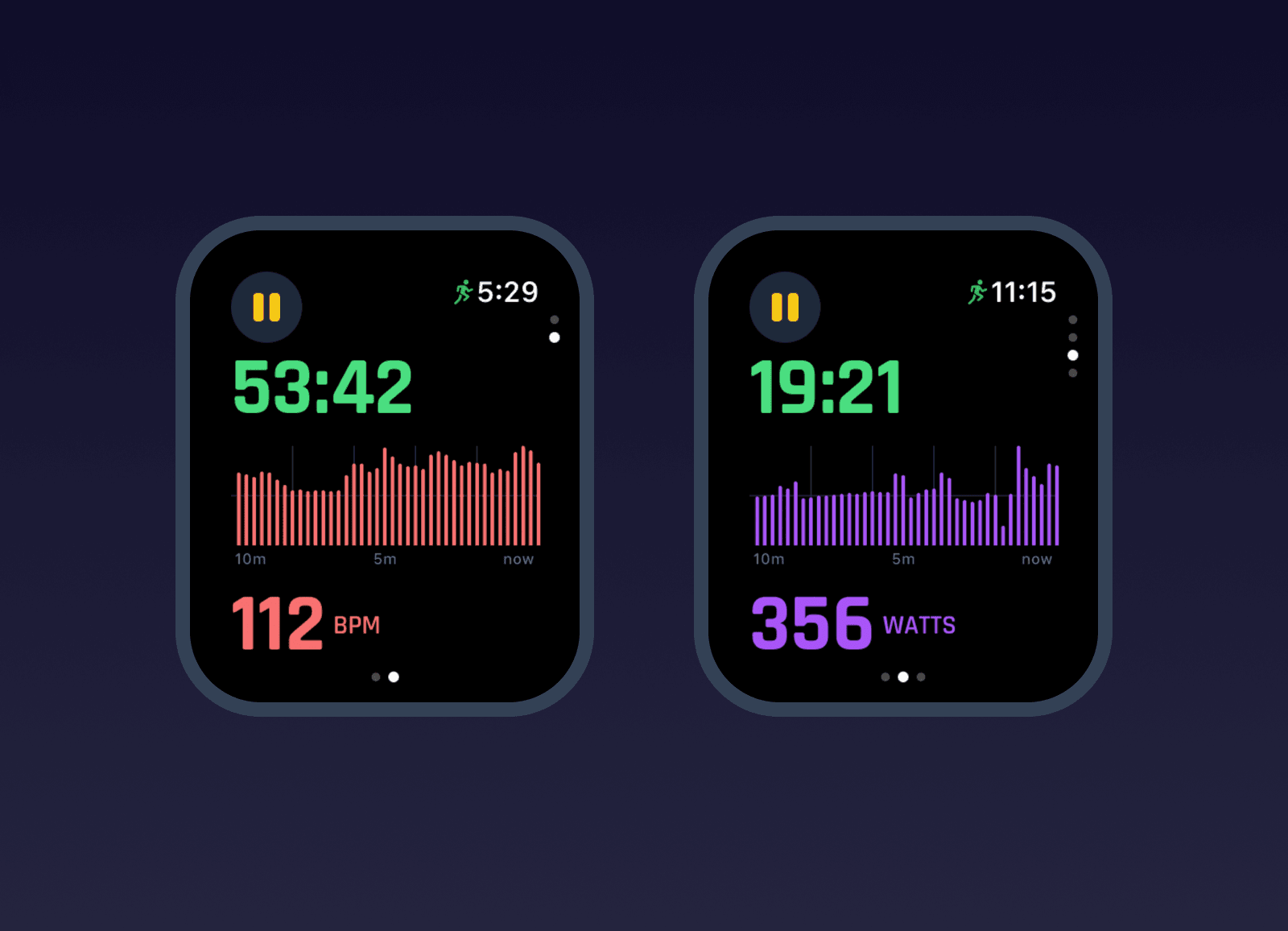 Power and heart rate pages on the watch now show rolling 10-minute live charts. This gives much better short-term context during workouts and makes it easier to understand effort changes in real time. HealthKit activities that include power data now also show full power charts inside activity detail views.